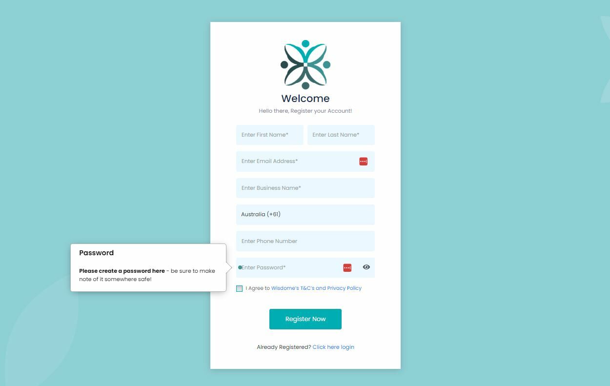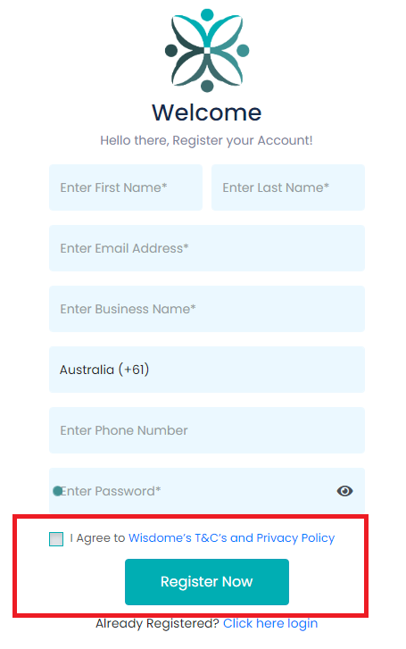 3. Check ' I agree to Wisdome's T&Cs and Privacy Policy and click 'Register Now.'